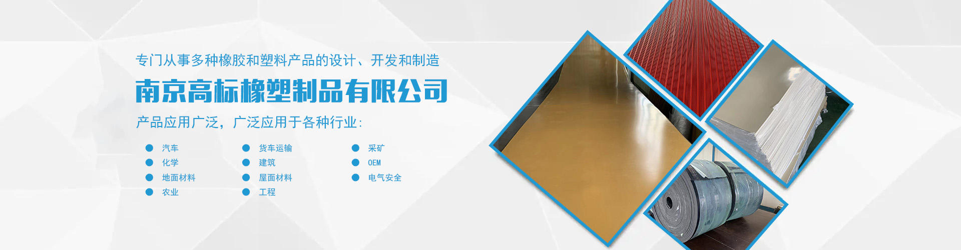 南京高標橡塑制品有限公司是一家專業(yè)的橡膠板、橡膠制品和熱塑性塑料產(chǎn)品的制造商。主營產(chǎn)品:三元乙丙橡膠板,丁腈橡膠版,氯丁橡膠板,丁苯橡膠板,丁基橡膠板,天然橡膠板,硅橡膠板,氟橡膠板,絕緣,防靜電,導電橡膠板,夾布,夾金屬網(wǎng)橡膠板,耐酸堿橡膠板,耐油橡膠板,耐磨橡膠板,阻燃橡膠板,阻尼橡膠板,減震橡膠板,防滑橡膠板,橡膠墊片等。 高標橡塑專門從事多種橡膠和塑料產(chǎn)品的設(shè)計、開發(fā)和制造。我們的產(chǎn)品應(yīng)用廣泛。廣泛應(yīng)用于各種行業(yè),包括:汽車,貨車運輸,采礦,化學,建筑,OEM,地面材料,屋面材料,電氣安全,農(nóng)業(yè),工程等。 高標橡塑的客戶服務(wù)于許多行業(yè),包括墊片切割、分銷商、工業(yè)用品零售商和批發(fā)商。自